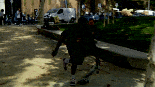 They were filmed on two separate days. I was also quite happy with how the part ends with the Clyde [Singleton] slide flip and then finishes with the nollie back tail in Shoreditch. They’re kind of similar looking; one goes one way, one goes the other. They’re both fisheye, and he kind of glides past. He couldn’t have done any of those tricks any better. As I said, traditionally, everything is always pretty last-minute with him. So his part was unfolding as I was nearing the end of editing. I’d say the majority of it we got in the last two months. It’s funny how it works out. Two months before the premiere, I was almost thinking Korahn’s not really going to have a part in this. Then he came through yet again, and in a really tasteful way too. Like I was saying about those two tricks just flowing really nicely together, it’s just funny how it kind of always works out somehow. He’s still getting better, learning new tricks, it’s great, man. We’re working on a solo part; we started this year, but then this video took over. We’re gonna get back on that in the new year. It’s so nice to be there and be part of him pushing it and learning new tricks, good to be there to document it.