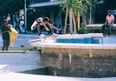 This was a Nike SB trip consisting of a powerful crew. Marca Barbier, Casper Brooker, Kyron Davis, Korahn Gayle, Chris Jones, Kanya Spani and Slam team rider Kyle Wilson were in tow. It looks like an amazing holiday with more than enough shredding to back it up. Shop for Nike SB HERE and pick up the latest Grey Skate Mag